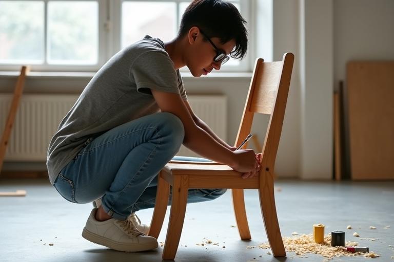 - Verwende Hartholz (z.B. Buche oder Eiche) für eine besonders lange Lebensdauer des Stuhls.