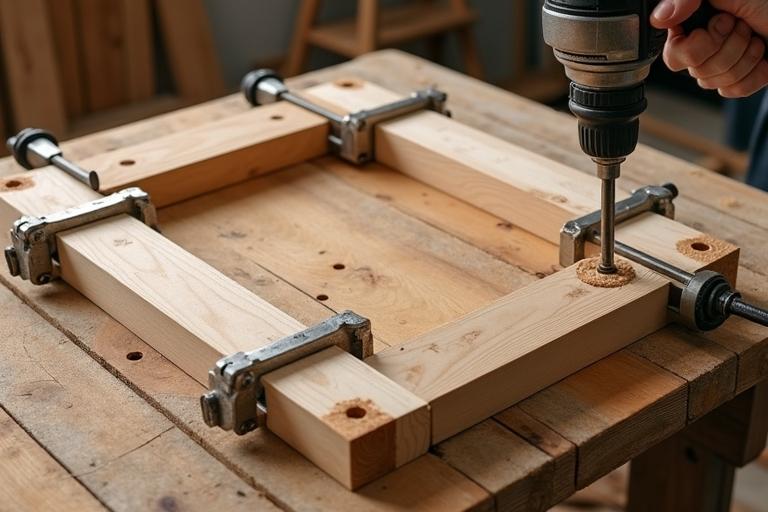 - Verbinde die Ecken mit Holzleim und fixiere sie mit Schraubzwingen.