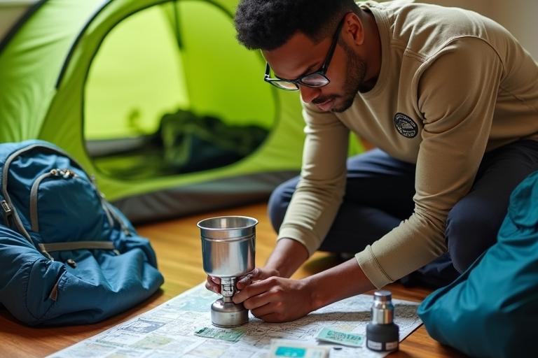 - Kontrolliere Zelt, Schlafsack, Isomatte, Kocher und andere Ausrüstung auf Funktionstüchtigkeit.