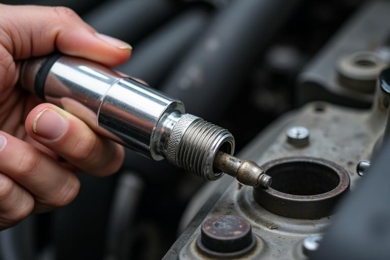 - Drehen Sie die Zündkerze gegen den Uhrzeigersinn heraus und entnehmen Sie sie vorsichtig.