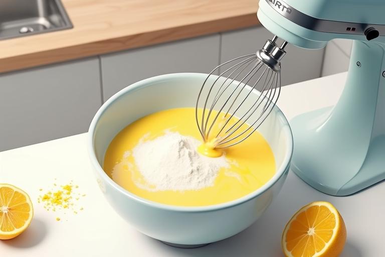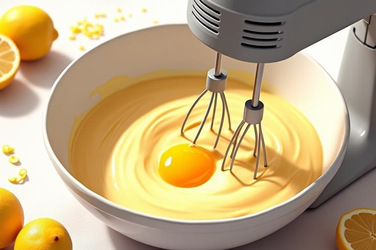 - Nach dem letzten Ei die Zitronenschale und 2 EL Zitronensaft unterrühren.