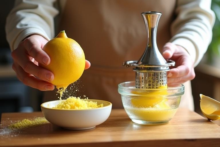 - Mit einer feinen Reibe die Schale beider Zitronen abreiben, dabei nur die gelbe Schale verwenden.